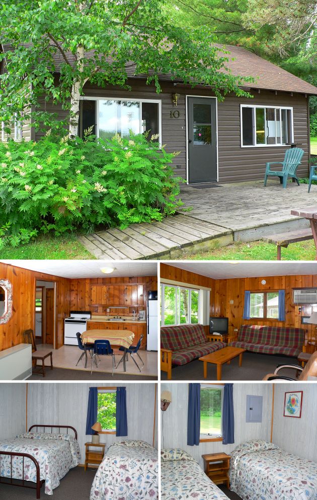 Cabin 10 has 2 bedrooms with 2 full and 2 twin size beds and 2 sleeper couches. The cottage has a great view of the gorgeous sunsets over Cutfoot Sioux and is located very close to the pool. |